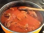 6. Una vez lista se pone en la olla con la salsa, se tapa y se sigue cocinando un rato más para que tomé el gusto de la misma y termine de ablandar si estaba algo dura.
