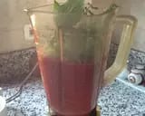 2. Mientras hierve la lengua se va preparando la salsa. Se pone en la licuadora, el puré de tomate, cebolla, ajo porro, ajos, las ramas de albahaca, orégano, romero, se licúa hasta que esté todo bien mezclado.